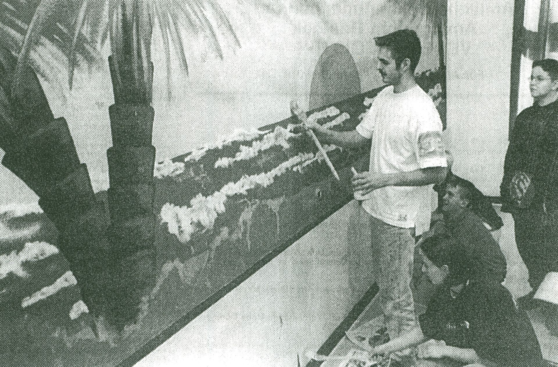 Am Elternabend, als das Vorhaben besprochen wurde, brachte der große Bruder seine Idee ein. Die entworfene Skizze gefiel, und so setzte er sie, nachdem der Raum während der Herbstferien von mehreren Eltern mit Rauhfasertapete beklebt, der Sockel in Mintgrün und die Wand in Weiß gestrichen worden war, in die Tat um. Da Malen schon von Kindheit an ein Hobby von ihm ist, machte ihm diese Arbeit, wie er sagte, großen Spaß. Und bei aller Akribie ging es ruckzuck über die Bühne.